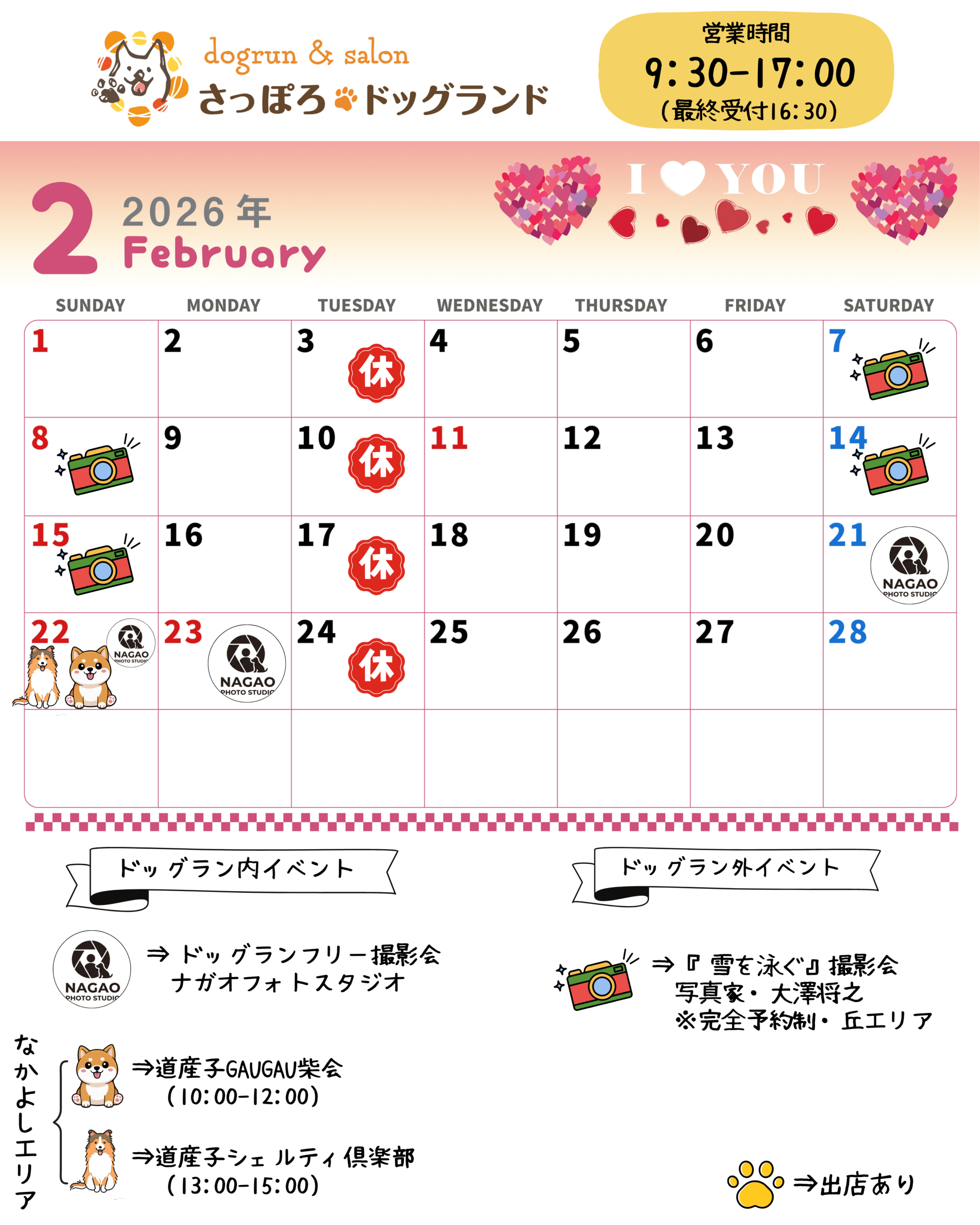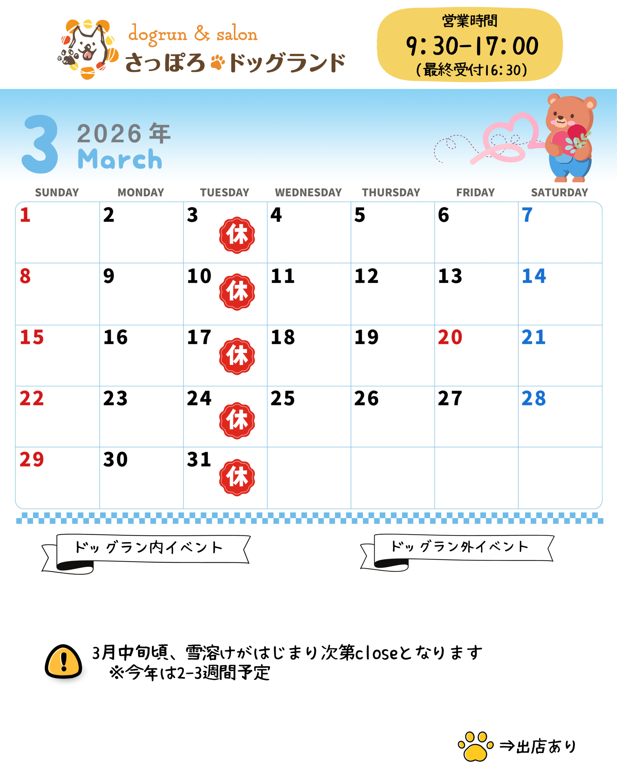 1・2・3月の最新営業カレンダー